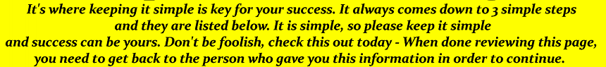 Please understand that this web-page is not fancy at all. It is here to explain a few things in the easiest way possible. Please, keep this simple because that is the key for your success and thank you for taking the time to visit this page.